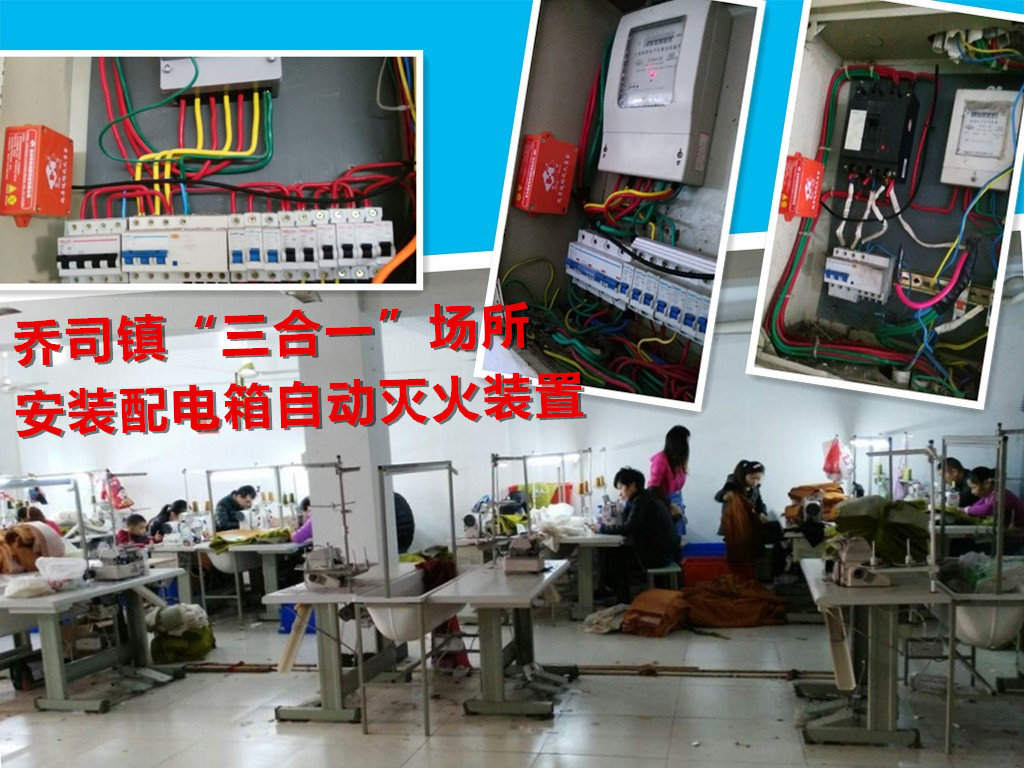 與以往“三合一”整治工作不同的是,此次工作的亮點是鎮(zhèn)政府為所有“三合一”場所的配電柜、配電箱安裝微型自動滅火裝置,該裝置由杭州華神院士工作站自主研發(fā),安裝在高運轉(zhuǎn)負荷、高火災(zāi)風(fēng)險的配電柜、配電箱內(nèi),可無人值守地監(jiān)測火情,一旦發(fā)現(xiàn)明火即可秒速啟動自動滅火裝置,噴發(fā)一種名為熱氣溶膠的環(huán)保型乳白色滅火氣體,只需十余秒就可完全撲滅明火,并啟動報警鈴音。該裝置的安裝,從高火災(zāi)隱患的電氣源頭部位杜絕了火患,為“三合一”場所內(nèi)的人員疏散和逃生贏得了寶貴的時間,有效提高了自防自救的能力。