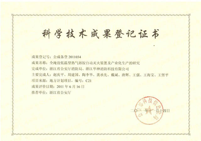科學技術成果登記證書