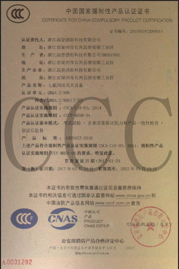 七氟丙烷“3C”證書