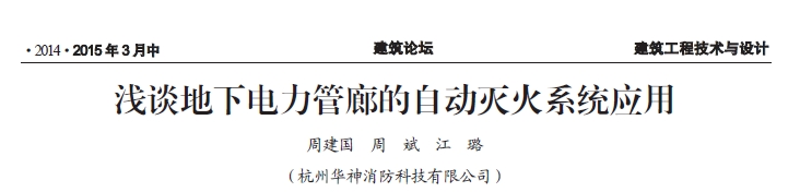 淺談地下電力管廊的自動(dòng)滅火系統(tǒng)應(yīng)用