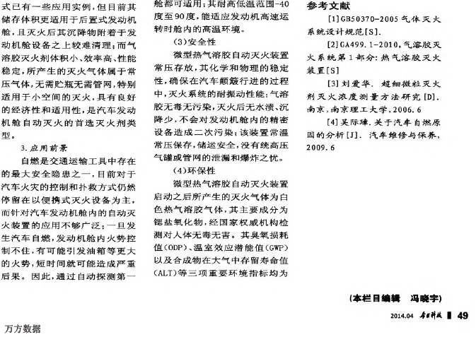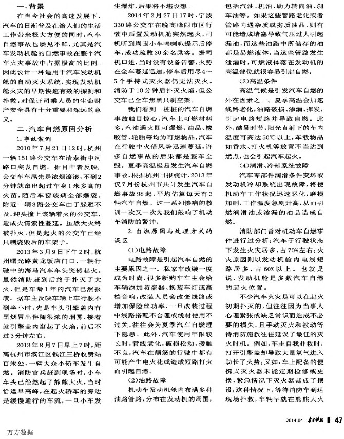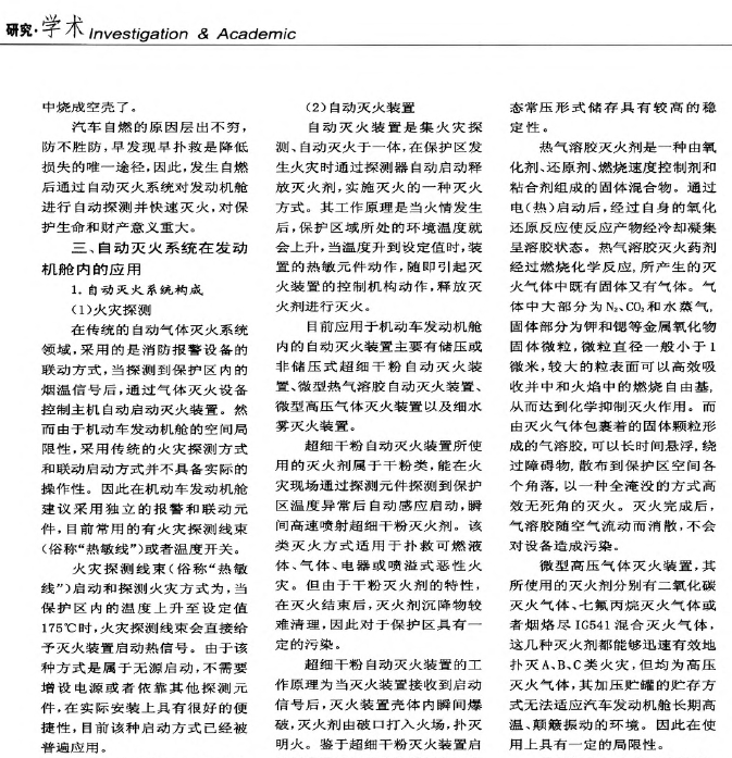 自動(dòng)滅火系統(tǒng)在機(jī)動(dòng)車(chē)發(fā)動(dòng)機(jī)艙的應(yīng)用研究